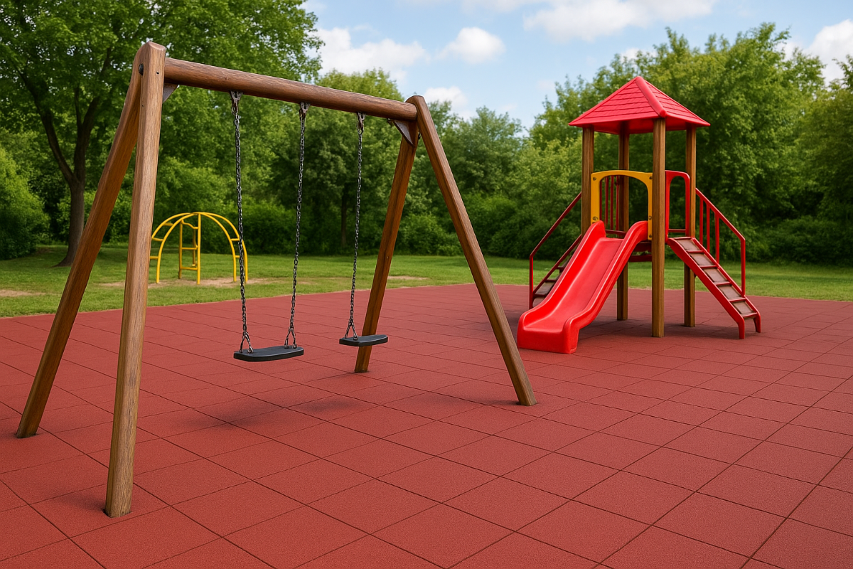 Dämpfend, rutschfest und belastbar – perfekt für Outdoor-Fitnessgeräte oder Kindersportplätze.