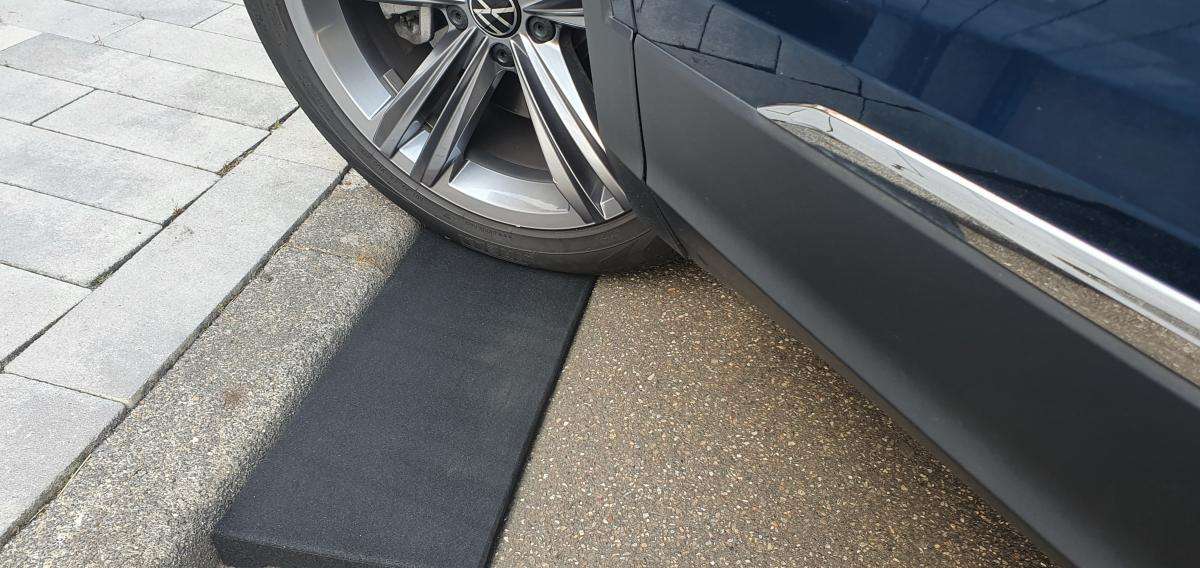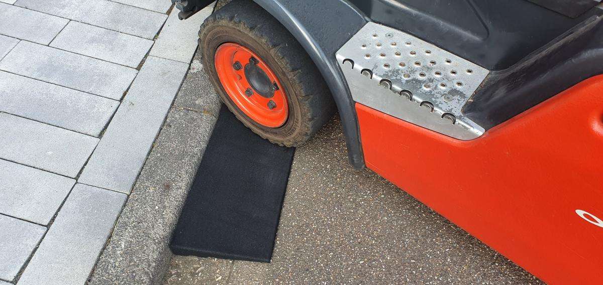Die Reuko – Bordsteinrampen Premium aus Gummigranulat ist ein Rampensystem speziell für den KFZ – Verkehr, Gabelstapler, Hubwagen, Rollstühle etc.